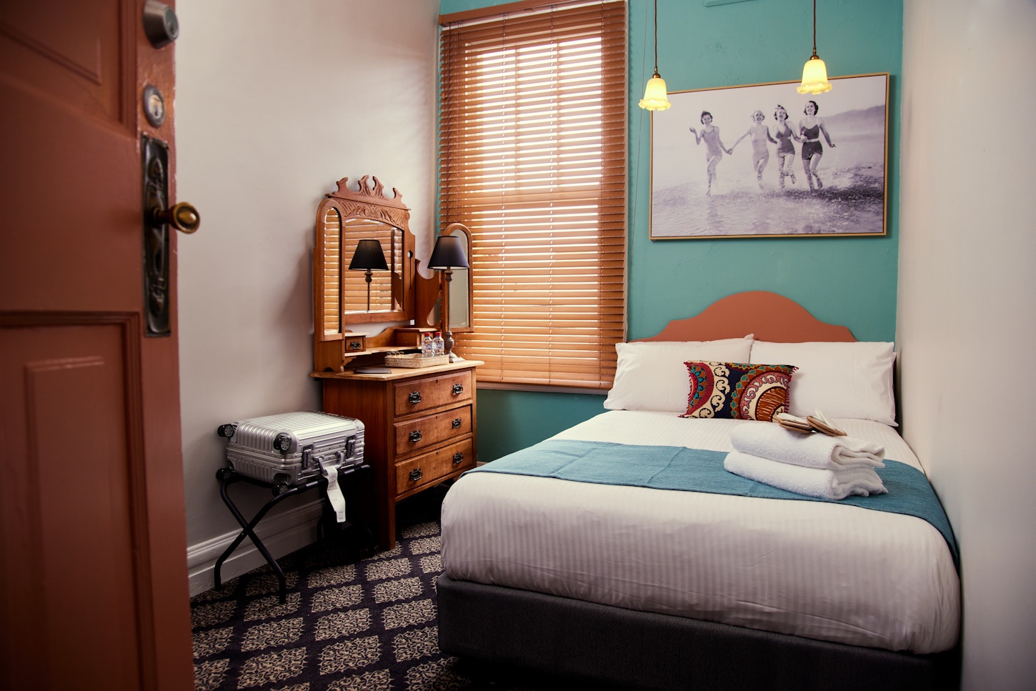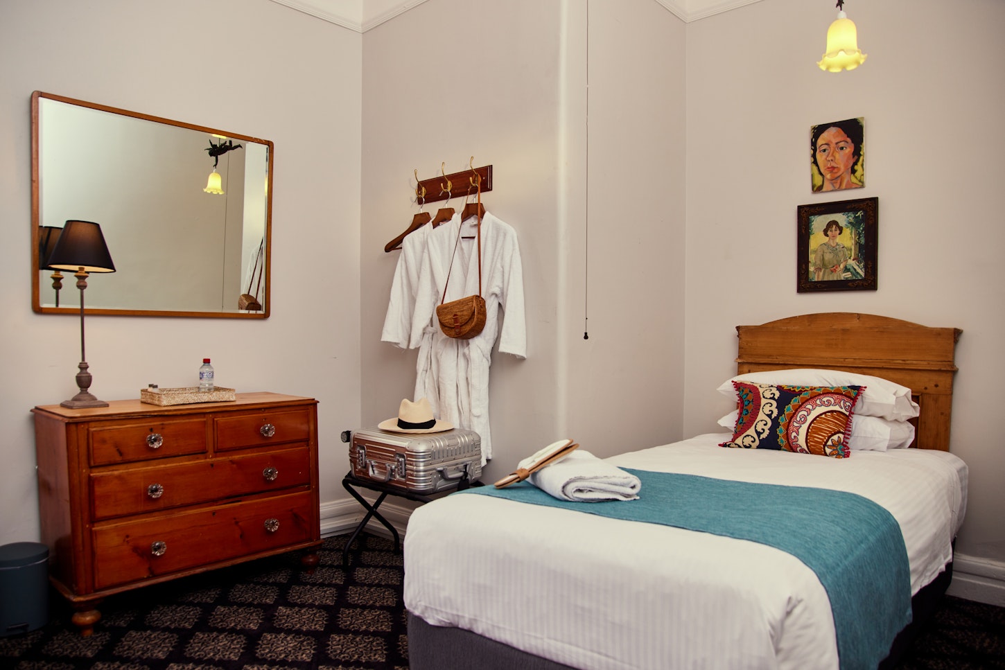 Our Twin Share room features cosy single beds. Adorned with original artwork and equipped with a ceiling fan, these rooms exude a genuine Aussie pub vibe, offering a cosy and quirky retreat. You’ll feel right at home with access to our shared Drawing Room, two bathrooms, and three toilets.